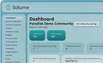 Managing your HOA's finances shouldn't be a burden. Solume's all-in-one platform makes budgeting, invoicing, and transaction tracking a breeze. Say goodbye to spreadsheets and juggling different tools— everything you need is right here.